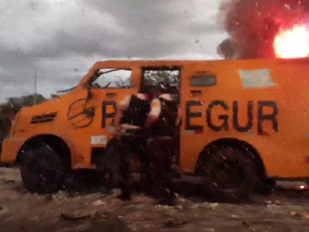 Imagens que circulam na internet mostram o momento em que os bandidos trocam tiros com os seguranças da empresa do carro-forte.