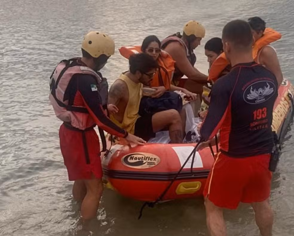 Três botes infláveis foram usados operação de resgate. “Todas as pessoas foram retiradas da embarcação e transportadas para terra firme sem ferimentos”, informou a corporação.