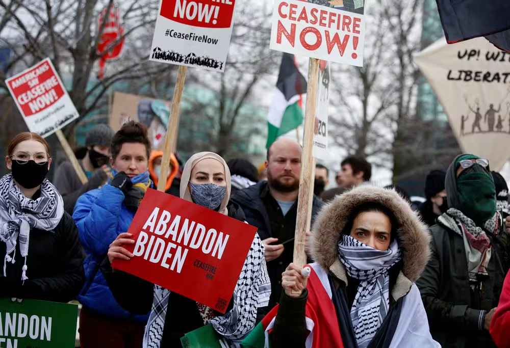 O apoio de Biden às políticas do premiê israelense Benjamin Netanyahu desencadeou raiva e ressentimento entre os residentes muçulmanos no país. Na semana passada, os EUA exerceram pela terceira vez o poder de veto a uma resolução no Conselho de Segurança sobre o cessar-fogo em Gaza.