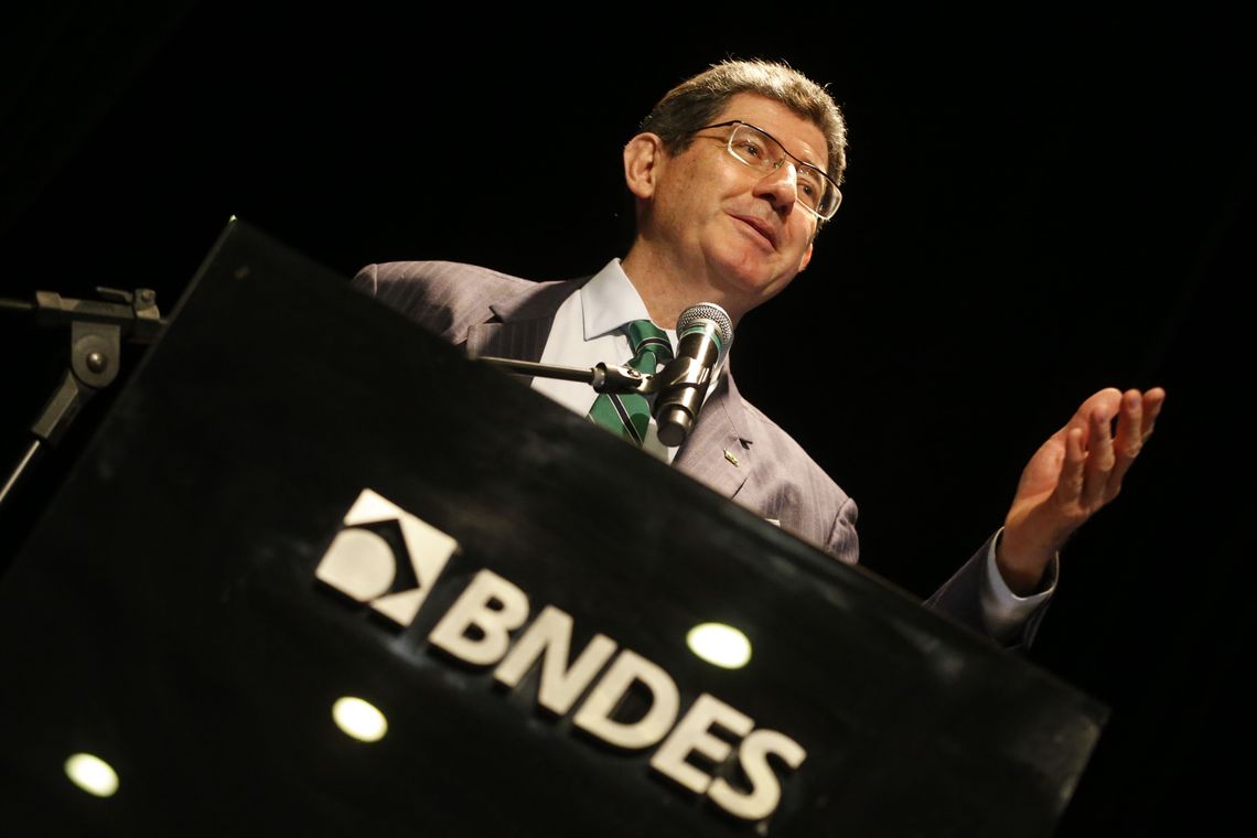 O novo presidente do Banco Nacional do Desenvolvimento Econômico e Social, Joaquim Levy, fala após recebe o cargo de seu antecessor, Dyogo Oliveira, em cerimônia realizada na sede da instituição, no Rio.