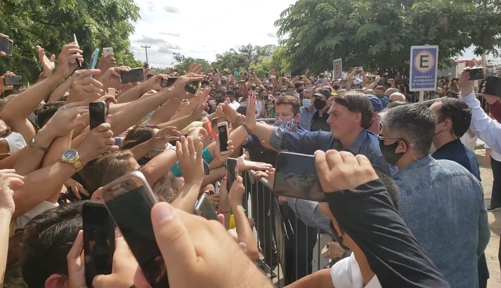 No RN, Bolsonaro cumpre agenda em Mossoró e Ipanguaçu. Apoiadores de Jair Bolsonaro se aglomeravam no Aeroporto de Mossoró desde às 7h à espera do presidente.