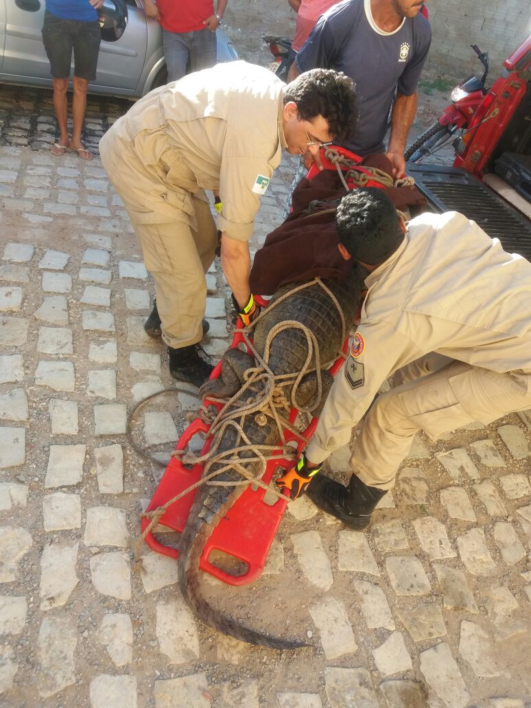 Bombeiros Militares de Mossoró capturaram no início da manhã deste domingo, um jacaré de mais de dois metros de comprimentos, na Ilha de Santa Luzia em Mossoró. O Corpo de Bombeiros Militar foi acionado por volta das 6h30 para fazer a captura do réptil, que estava em uma área de residências e representava risco aos moradores. Após a captura, o animal foi levado, com o apoio da Polícia Militar para o Ibama, em Natal. O capitão Mairton do Corpo de Bombeiros Militar do RN (CBMRN) foi o comandante da operação.