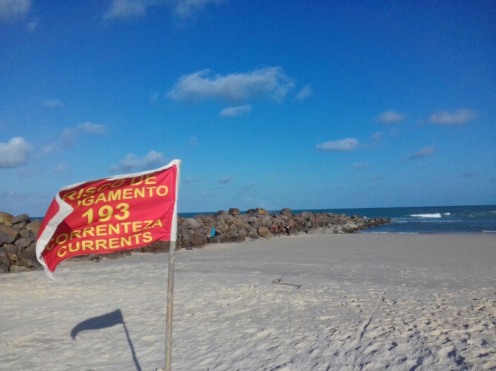 Na praia de Areia Preta existe uma bandeira, fixada pelo Corpo de Bombeiros, que alerta para a força das correntezas e o risco de afogamento na região.