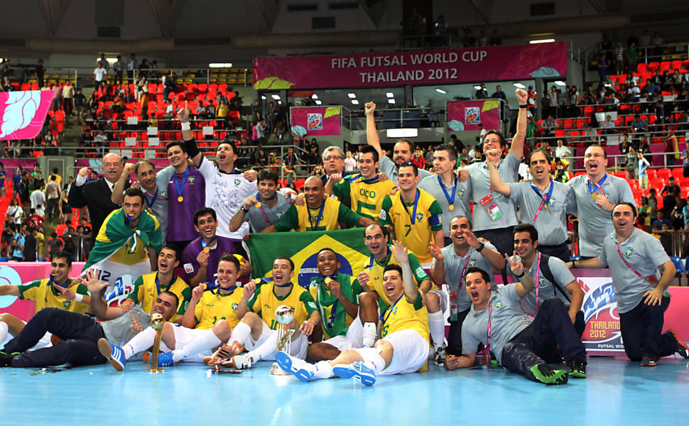 O Brasil venceu a Espanha e conquistou a Copa do Mundo de Futsal, na Tailandia. Aqui, alguns flagrantes das comemorações do jogo decisivo, que na prorrogação deu o oitavo titulo ao time brasileiro. Participou de forma decisiva dessa conquista o maior atleta da categoria no Brasil, o ídolo Falcão. Abaixo, algumas outras fotos que retratam esse grande feito do esporte brasileiro neste ano de 2012.