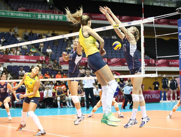 De forma incontestável, a seleção brasileira feminina estreou no hexagonal final do Grand Prix de vôlei, em Sapporo, no Japão, com uma arrasadora vitória no principal clássico dos últimos anos. Na madrugada desta quarta-feira (28), o time comandado por José Roberto Guimarães atropelou os Estados Unidos, atuais tricampeões, por 3 a 0, com parciais de 25/19, 25/12 e 25/10, em apenas 1h14m de partida. A equipe nacional, segunda colocada na etapa preliminar, volta à quadra na manhã de quinta (a partir das 7h10m, de Brasília), quando enfrentará o Japão.