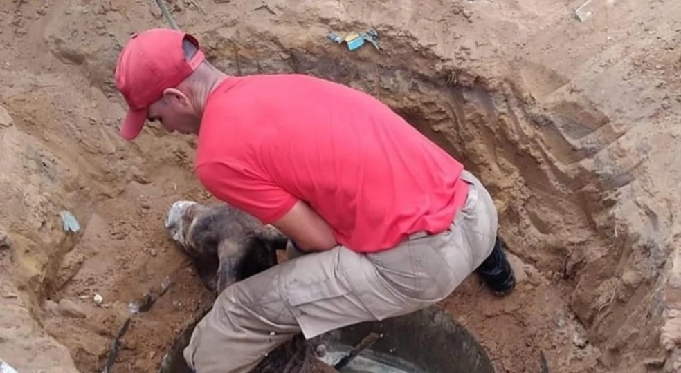 Um burro foi resgatado por militares após cair dentro de um bueiro em São Gonçalo do Amarante, na Grande Natal.