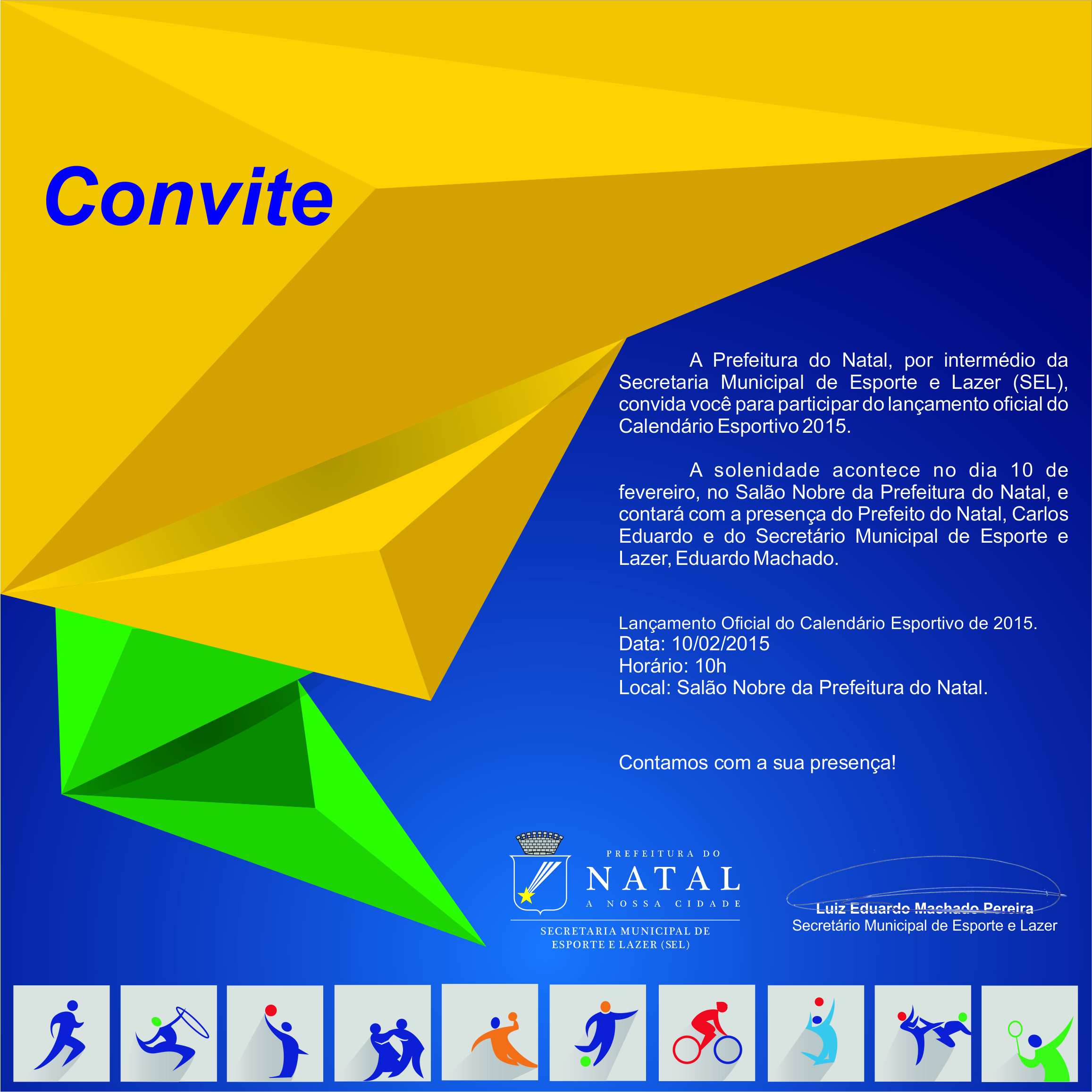 O ano será de muito esporte na capital potiguar. A Prefeitura do Natal, por intermédio da Secretaria Municipal de Esporte e Lazer (SEL), já definiu o calendário de atividades para 2015, que será lançado nesta terça-feira (10), às 10h, no Salão Nobre da Prefeitura do Natal. O calendário ressalta o compromisso da SEL em promover atividades esportivas permanentes ao longo do ano.