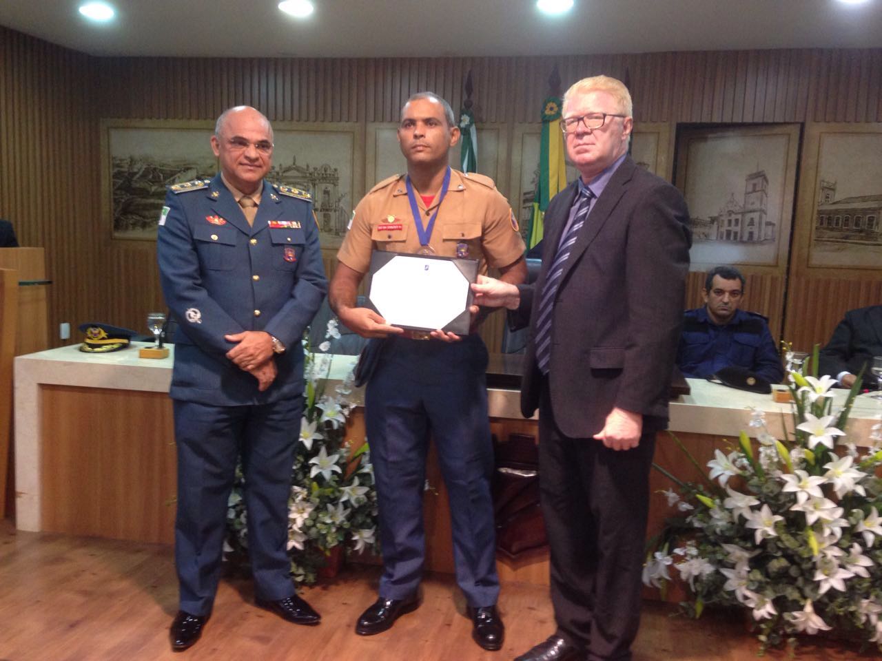 A Câmara Municipal de Natal homenageou na noite desta quarta-feira (4), com a Comenda Frei Miguelinho, o sargento do Corpo de Bombeiros Militar do Rio Grande do Norte, Eunildes Martins de Souza Júnior, recém promovido por ato de bravura por ter, no dia 25 de janeiro de 2011, se voluntariado para atuar em uma ocorrência que resultou no salvamento de três pessoas na Praia do Meio, em Natal. Durante a solenidade, que contou com a participação de autoridades militares e civis, amigos de profissão e familiares, o ato do sargento do CBMRN foi exaltado como um ato nobre e heróico. Naquela ocasião, mesmo estando em seu momento de folga, o sargento Eunildes Martins deslocou-se de sua residência para auxiliar a guarnição de serviço no resgate. A comenda foi uma justa homenagem pela dedicação do militar que é tido como um exemplo de profissional dedicado a preservação da vida.