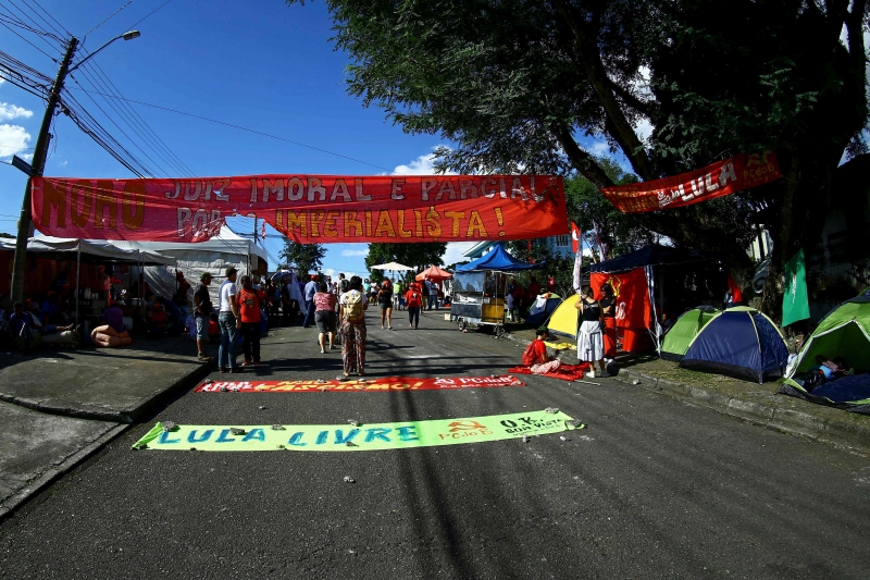 A Secretaria de Segurança Pública do Paraná divulgou imagens de câmeras de segurança que mostram um homem disparando contra o acampamento de apoiadores do ex-presidente Lula (PT) em Curitiba. As imagens foram registradas às 3h45min da madrugada de ontem. Um homem passa caminhando em direção acampamento. Pouco tempo depois, volta correndo e atira para trás. Duas pessoas ficaram feridas no ataque. Jefferson Lima de Menezes, 38, foi baleado de raspão e Márcia Koakoski, 42, foi atingida por estilhaços de um banheiro público que também foi atingido. Ele segue internado no Hospital do Trabalhador. O suspeito chegou em um carro preto e foi caminhando até o acampamento. Ele fugiu depois de atirar. Durante a tarde do sábado o delegado ouviu testemunhas. Um inquérito foi aberto para investigar o caso e a Polícia Militar irá reforçar o policiamento no acampamento. Segundo o presidente do partido no Paraná, ficou acertado que o policiamento será permanente no acampamento, que haverá segurança reforçada para o ato de 1º de Maio e que a investigação será a mais rápida possível.