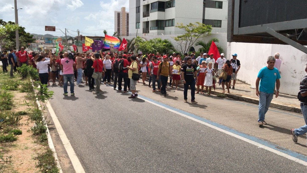 Um grupo de manifestantes se reuniu na manhã desta quarta-feira (24) em frente à Central de Comercialização da Agricultura Familiar e Economia Solidária do Rio Grande do Norte, no bairro de Lagoa Nova, na Zona Sul de Natal, para protestar a favor de Lula. O motivo é o julgamento do recurso do ex-presidente no TRF-4, em Porto Alegre (RS).