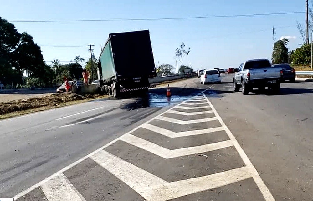 O trânsito foi desviado pelas marginais da rodovia. A carreta seguiu na pista até a manhã da quarta-feira. Por volta das 10h40, o caminhão continuava no local.