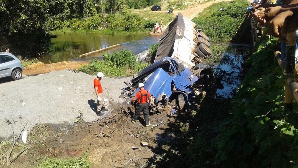 Caminhão e moto caíram sobre o rio, que está com o nível de água baixo. O impacto foi tão forte que abriu um buraco no piso da ponte. O motociclista, identificado como Joaquim Vieira da Silva, de 55 anos, morreu na hora. Já o caminhoneiro, fugiu do local.
