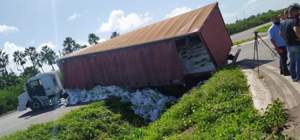 O caminhão caiu em um desnível e ao tentar voltar para a pista, tombou. O veículo impediu a passagem das duas vias da estrada. Durante a noite, equipes tentaram retirar o caminhão até com o uso de um guincho, mas não foi possível em função do peso. Nesta sexta, a PRF fez a remoção de parte da carga para diminuir o peso do veículo antes de ser usado um guindaste para levantá-lo.