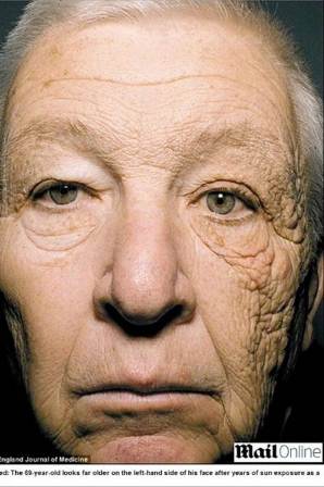 Cientistas da Universidade Northwestern, em Chicago, estudaram os prejuízos ao rosto do caminhoneiro. A condição – conhecida como dermatoheliosis unilateral ou fotoenvelhecimento – é causada por raios solares UVA e resulta em espessamento e enrugamento da pele.