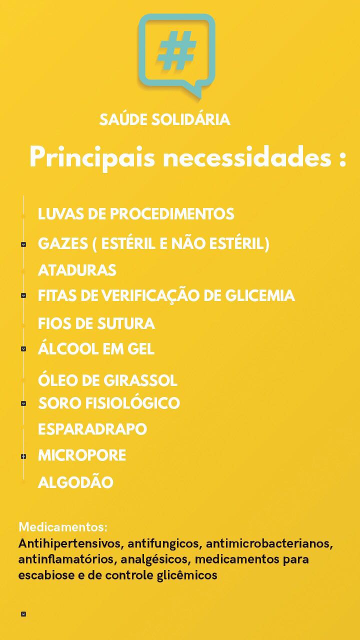 A ONG Saúde Solidária atende moradores de rua que por muitas vezes não têm acesso à saúde. A fisioterapeuta Cláudia Siqueira é a idealizadora do projeto que tem grande êxito na nossa cidade, chegando atender até 200 moradores de rua por semana. Com sua ajuda, o Saúde Solidária atenderá mais pessoas! As pessoas podem entregar sua doação na 98FM, Rua Carlos Chagas, Candelaria.