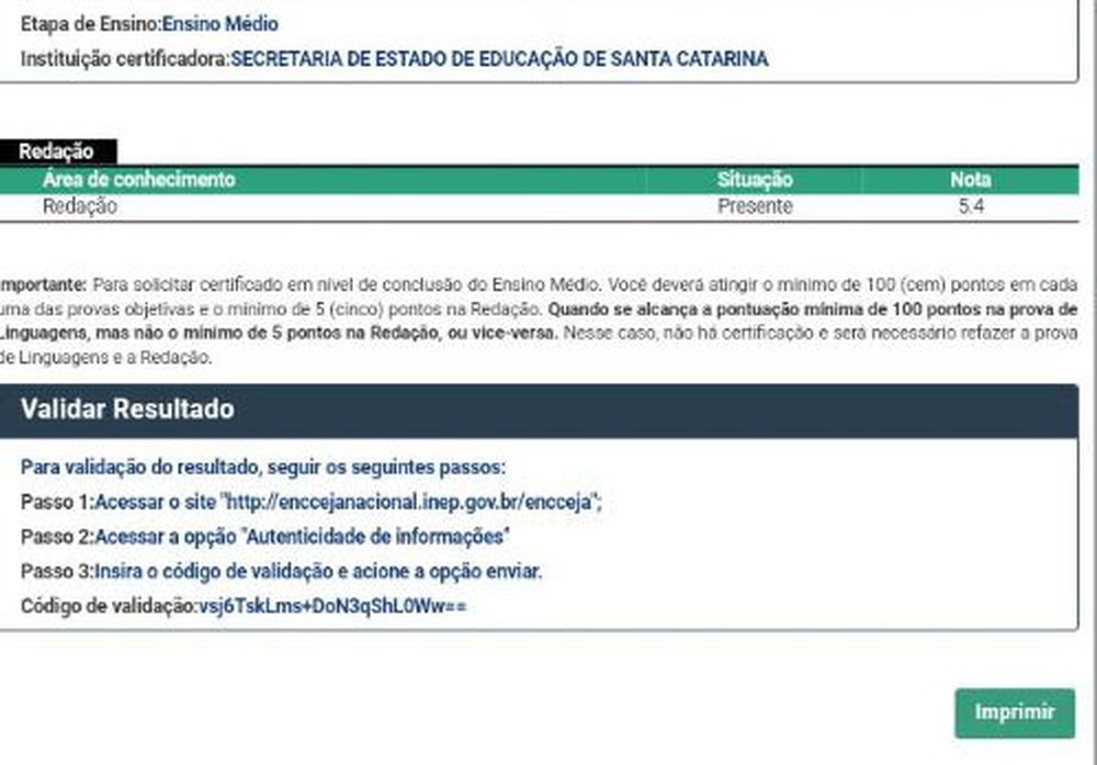 Para os participantes afetados, o Encceja disponibiliza apenas a nota da redação e de no máximo outras duas partes do exame – e não das quatro provas (linguagens, ciências humanas, ciências da natureza e matemática). Consequentemente, esses candidatos não conseguem saber se atingiram as notas mínimas exigidas para conseguir o certificado de conclusão do ensino médio.