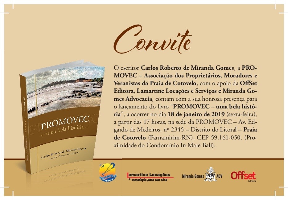Carlos Roberto de Miranda laça seu livro “PROMOVEC – Uma Bela História” dia 18 de janeiro