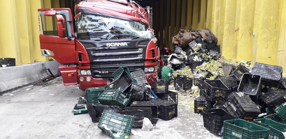 O motorista da carreta disse que houve um problema com a direção, que travou, e fez o veículo bater na parede do túnel. O acidente aconteceu ainda na madrugada, por volta das 4h. Parte da carga ficou espalhada pela via, atrapalhando ainda mais o trânsito no local.