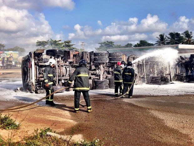 Uma carreta tombou e pegou fogo na madrugada deste sábado (18) na estrada de Extremoz. O incidente se deu por volta das 5h, próximo a um posto de combustíveis. O fogo atingiu outros dois caminhões que estavam no local. Segundo o Corpo de Bombeiros, ninguém ficou ferido. O motorista da carreta fugiu sem ser identificado. A carreta transportava combustíveis e seguia no sentido Natal/Ceará-Mirim. O motorista teria perdido o controle do veículo, e tombado próximo ao posto. Os Bombeiros controlaram a situação antes das 8h.