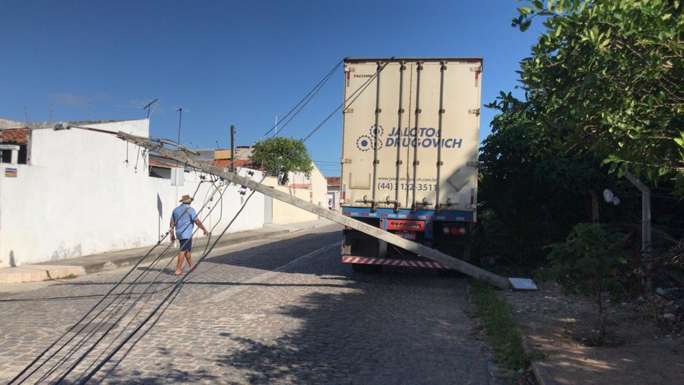 Uma carreta derrubou dois postes em um acidente que aconteceu na manhã desta terça-feira (25) no bairro Jardim Aeroporto, em Parnamirim, na Grande Natal.
