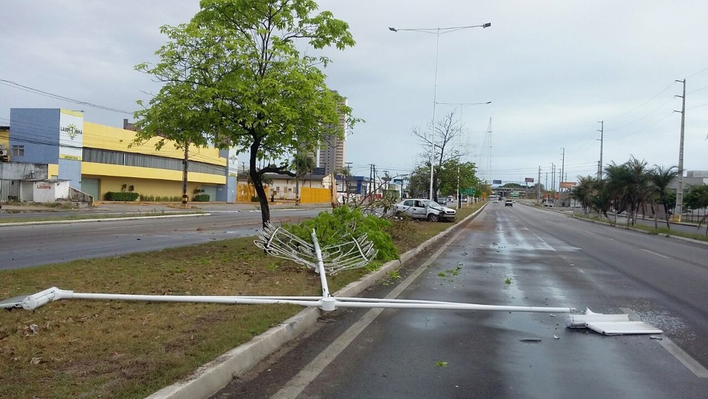 Um dos braços do poste ficou sobre uma das faixas da rodovia, no sentido Parnamirim/Natal. O carro, bastante amassado, ficou sobre o canteiro.