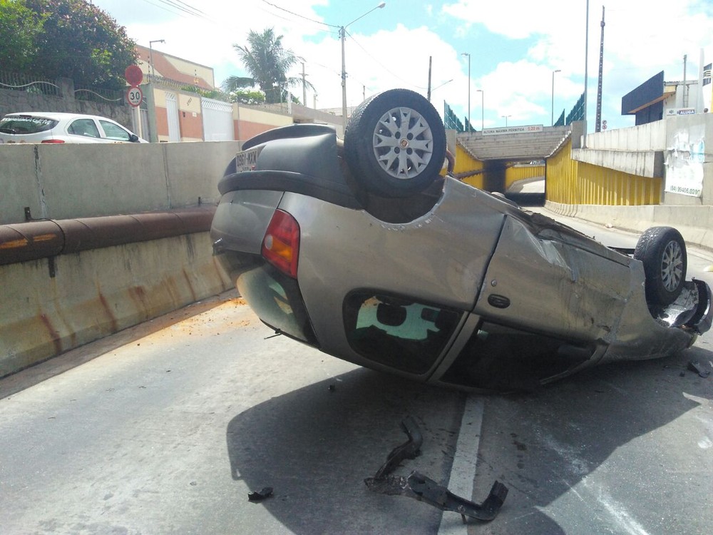 O acidente aconteceu na entrada do túnel que sai da Avenida Capitão-Mor Gouveia e dá acesso à avenida Prudente de Morais. Segundo informou o motorista, ele foi trancado por outro carro e subiu uma mureta, o que provocou o capotamento.