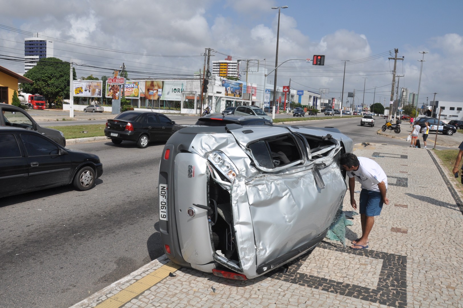 No início da manhã deste sábado, na avenida Roberto Freire, Capim Macio, zona Sul da cidade, um Fiat Novo Uno (placas NOF-0619, de Natal) capotou próximo à churrascaria Sal e Brasa. O carro trafegava no sentido centro-Ponta Negra quando perdeu o controle e atravessou o canteiro central. Após capotar, parou no calçadão no sentido inverso da via.