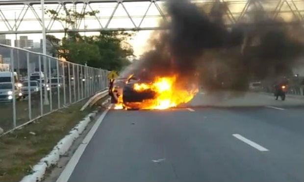 A motorista do carro contou que trafegava na BR-101 quando um motoqueiro avisou que o carro estava com fumaça. “Ele sinalizou pra eu sair do carro. Só deu tempo de parar o carro e descer e o fogo começou”, disse. Ela não ficou ferida e conseguiu tirar os pertences de dentro do veículo.