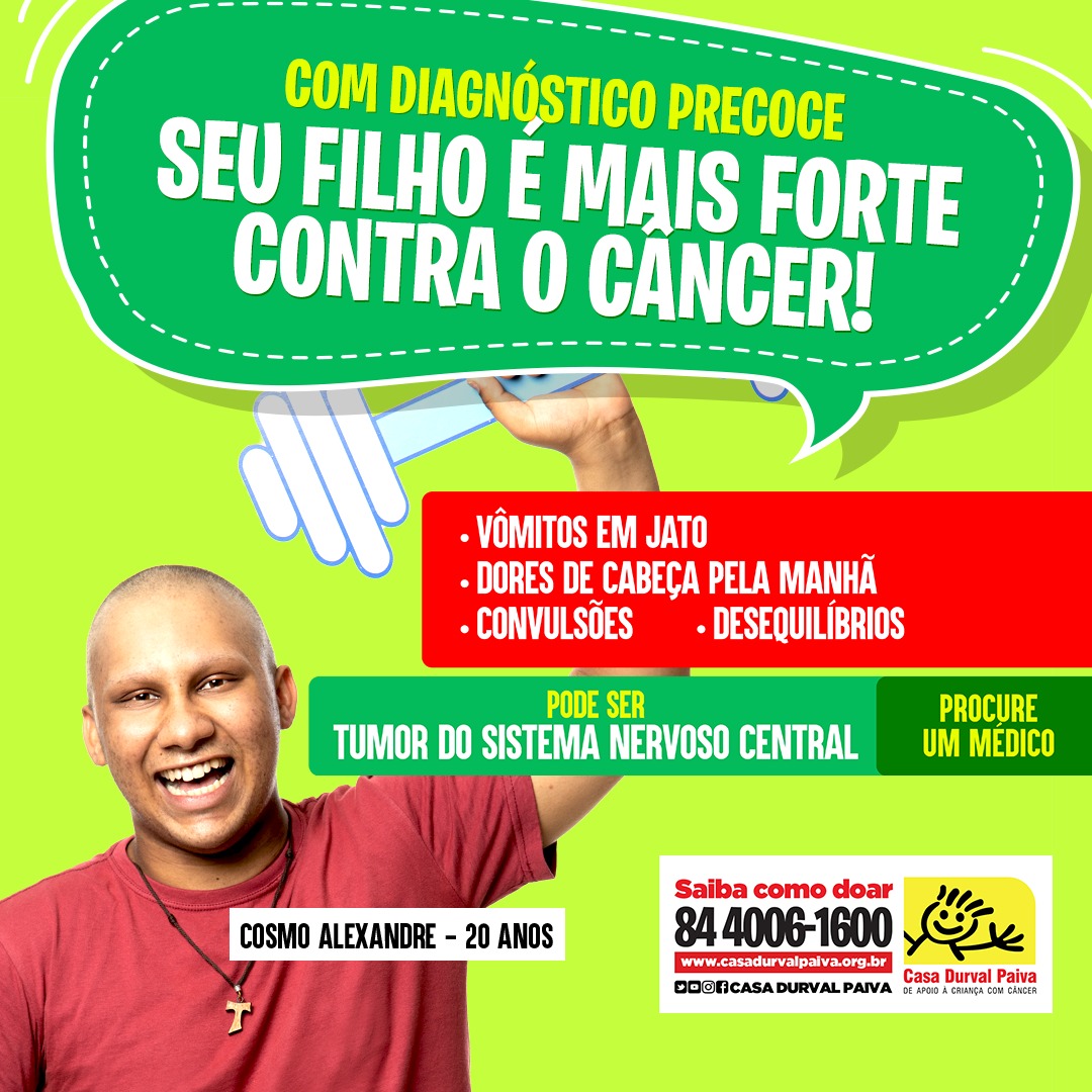 Integrando as atividades da Campanha do Diagnóstico Precoce 2021, a cada mês, a Casa Durval Paiva vai realizar um trabalho intensivo de divulgação de sinais e sintomas de um tipo específico de câncer, entre os que mais acometem as crianças e os adolescentes.