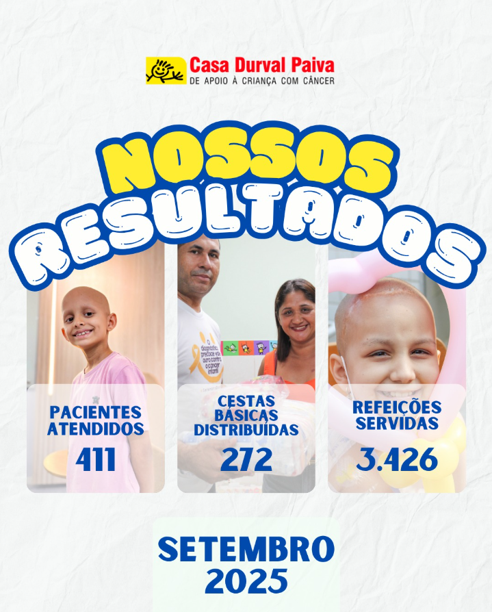 A Casa Durval Paiva divulgou o Relatório de Atividades Sociais, referente a setembro de 2025, e os números mostram o quanto a solidariedade tem feito diferença na vida de muitas famílias.