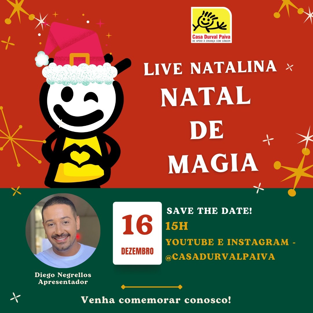 Nesta quinta-feira (16), a partir das 15h, a Casa Durval Paiva promoverá uma live especial, iniciando as celebrações natalinas. Com apresentação de Diego Negrellos, a transmissão será realizada através das plataformas YouTube e Instagram, que levam o nome da instituição: @casadurvalpaiva.