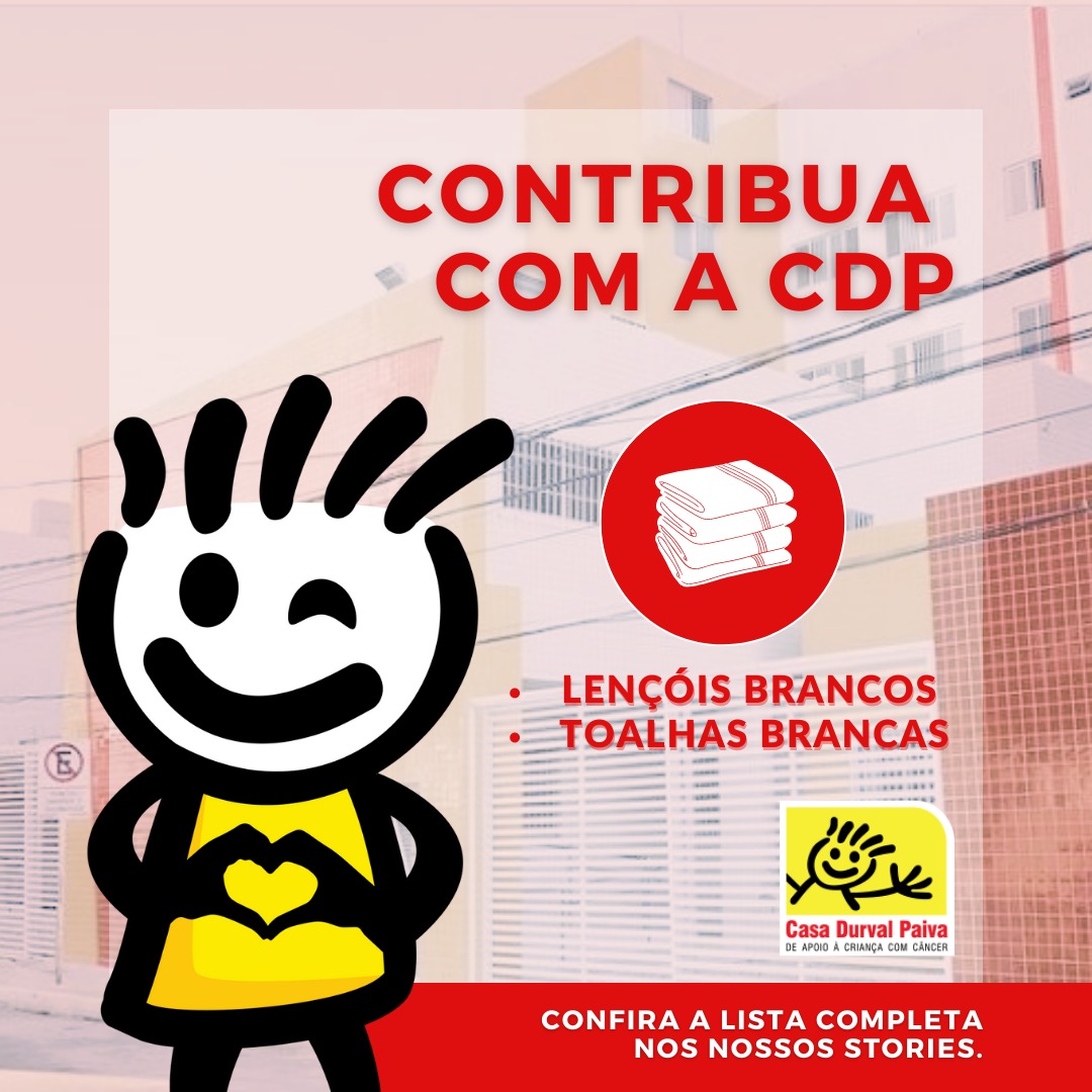 A Casa Durval Paiva busca prestar o melhor atendimento às crianças e adolescentes acolhidos, se mantendo através da doação de itens, para a nutrição e acolhimento deles, durante o tratamento contra o câncer e doenças hematológicas crônicas, bem como, seus familiares. No momento, a CDP está com a necessidade de doação de toalhas e lençóis brancos.