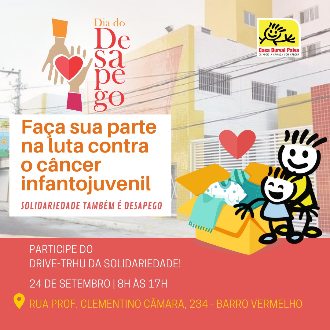 A Casa Durval Paiva estará recebendo diversos itens, em bom estado de conservação, nesta sexta-feira (24), em mais uma edição do “Dia do Desapego”, das 8h às 17h. A ideia é desapegar daqueles itens acumulados e que estão sobrando em casa, transformando a vida de crianças e adolescentes carentes, acolhidos pela instituição.