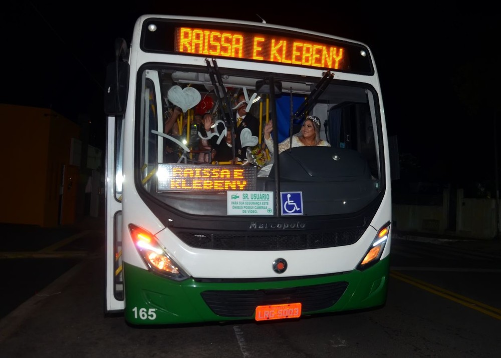 Após a troca de alianças em uma igreja do conjunto Mirassol, na Zona Sul da capital, marido e mulher lotaram o veículo com os convidados e dirigiram o coletivo até o local da festa, no mesmo bairro.