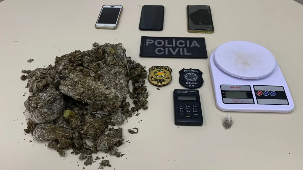 Durante as diligências, o homem e sua namorada de 18 anos também foram presos em flagrante por tráfico de drogas, após os policiais encontrarem na casa deles cerca de 1kg de maconha e uma balança de precisão.