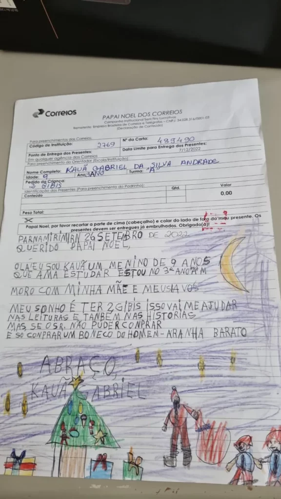 Papai Noel dos Correios: saiba como adotar uma cartinha e presentear uma criança no RN