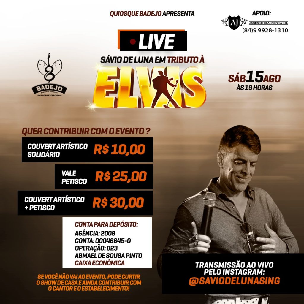 Sávio de Luna faz Tributo a Elvis hoje (15) às 19h