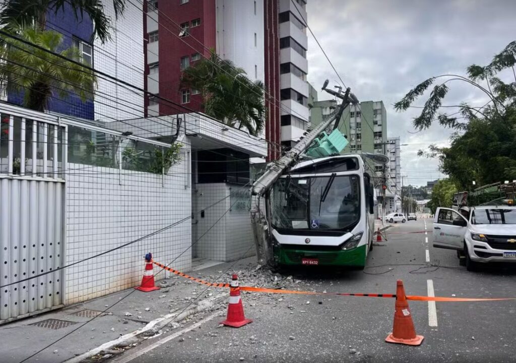 Ônibus bate em poste e deixa bairros de Natal sem energia