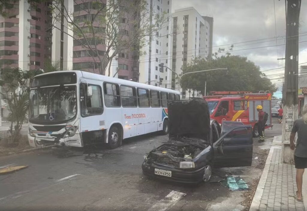 Idosa fica presa a ferragens de carro após colisão com ônibus em Natal