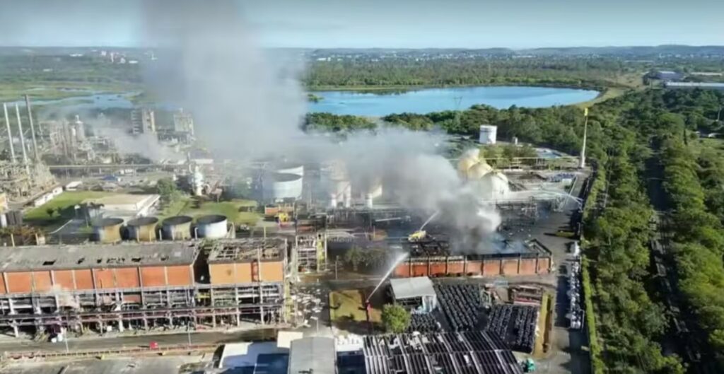 Explosão causa incêndio de grande proporção em fábrica da Braskem na Bahia