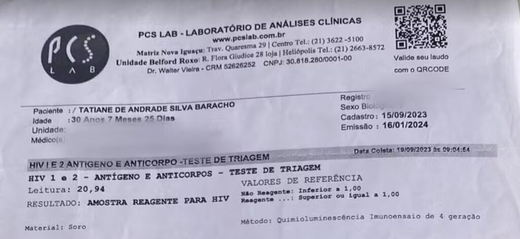 Mulher diz que teve exame falso positivo para HIV feito pelo PCS no parto, e que bebê tomou antirretroviral por 28 dias