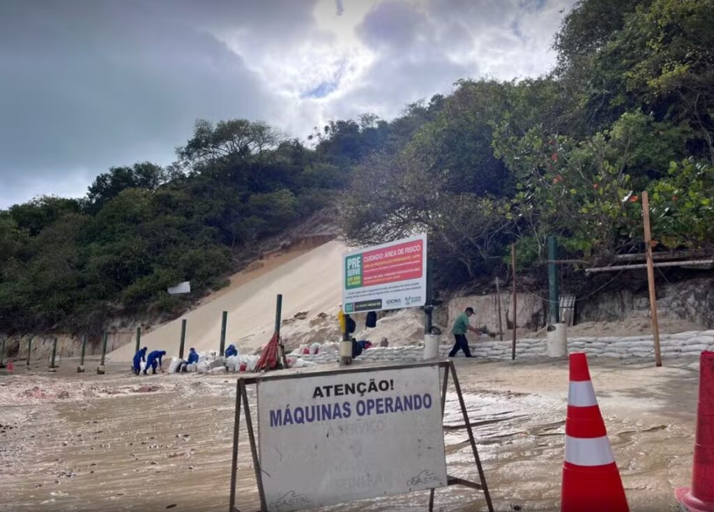 Prefeitura isola área de praia no perto do Morro do Careca em Natal: ‘Risco de colapso’