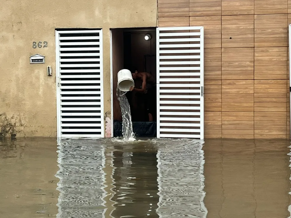 Lagoas de captação transbordaram e casas ficaram alagadas em bairros de diferentes regiões da cidade. Uma das regiões afetadas foi o bairro de Pajuçara, na Zona Norte de Natal.