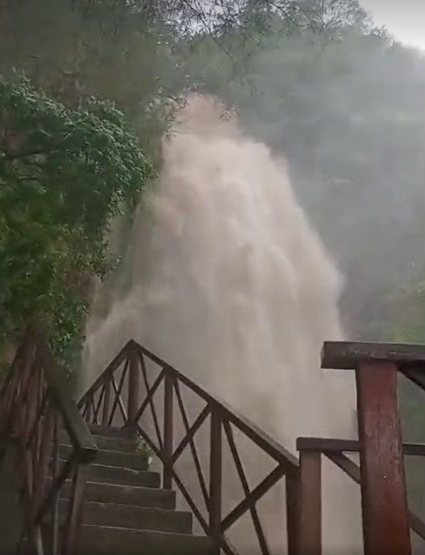 “Acontece em período de chuva onde a água escoa para cachoeira fazendo essa beleza natural”, explicou.