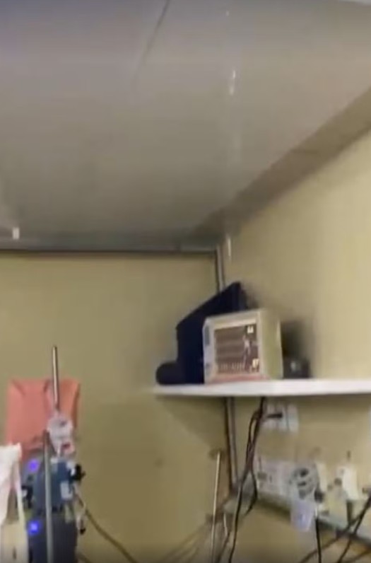 Vídeos registrados nas unidades de saúde mostraram queda d’água do teto, alagamento de corredores e até em um quarto de internação, no qual foi possível ver os equipamentos ligados.