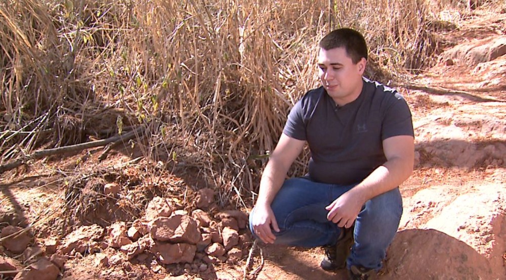 O material foi encontrado pelo comerciante André Giancherini e estava cravado em uma rocha. Ele conta que estranhou a coloração esbranquiçada que destoava do avermelhado predominante no solo.