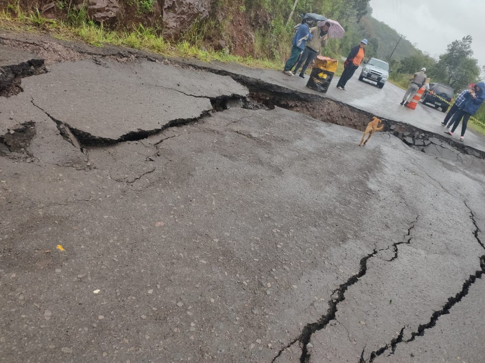 - VRS-826, km 5, Alto Feliz, bloqueio total, rachadura no asfalto