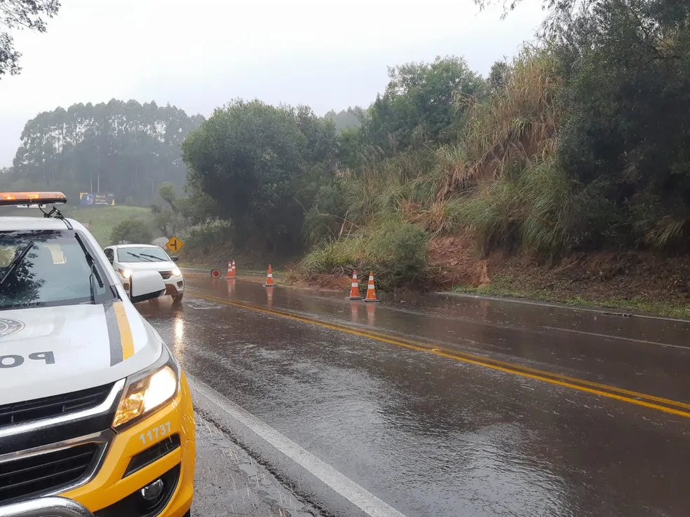 - São Marcos – BR-116, km 109: queda de barreira no acostamento e água na pista. Via sinalizada