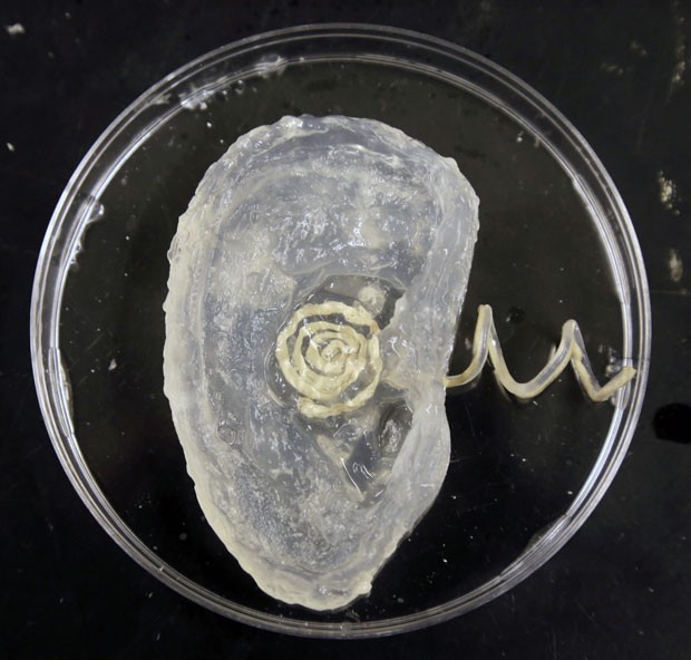 Cientistas da Universidade de Princeton, nos EUA, usaram a técnica de impressão em 3D para criar uma orelha composta de células de cartilagem, um tipo de polímero e nanopartículas eletrônicas capaz de captar frequências num espectro mais amplo que o ouvido humano.