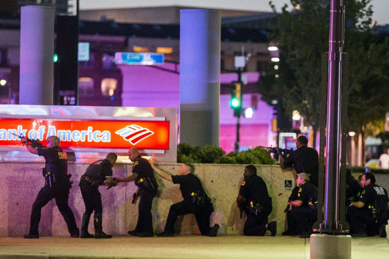 O chefe de polícia de Dallas, David Brown, descreveu a ação dos atiradores como de “estilo emboscada”. Em entrevista, no fim da noite, David Brown disse: “Acreditamos que esses suspeitos foram se colocando de forma triangular sobre policiais de duas posições diferentes em garagens no centro da cidade”. De acordo com o chefe da polícia, os atiradores “estavam planejando ferir e matar tantos policiais quanto pudessem”. Alguns agentes foram feridos nas costas.